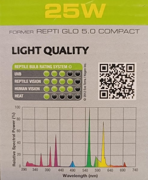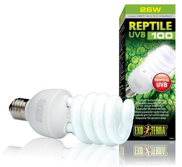 Lavenergipære med UVA+B. 2.0 pæren er beregnet til regnskovs reptiler og har en farvetemperatur på 6700 kelvin.
