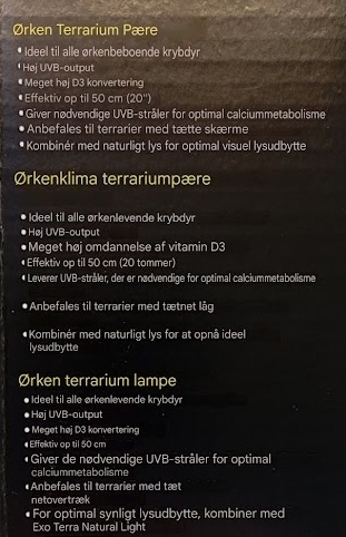 Lavenergipære med UVA og B. 150 pæren er beregnet til ørken reptiler med behov for meget UVB, pæren har effekt til 50 cm.