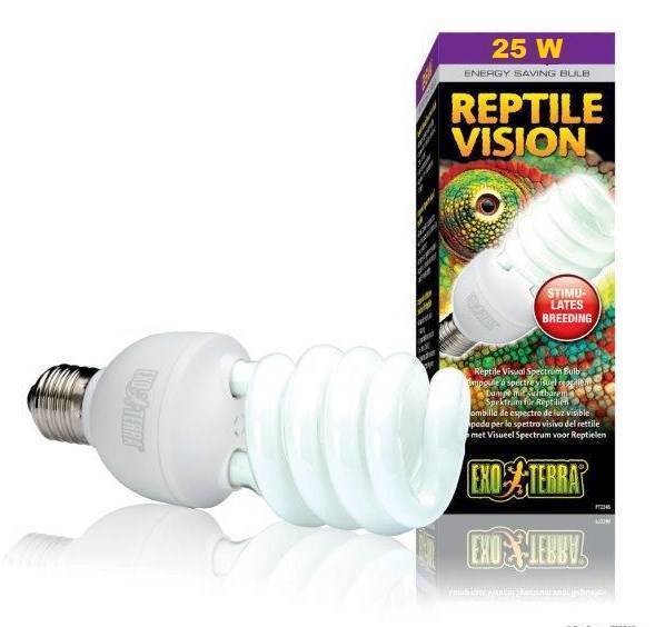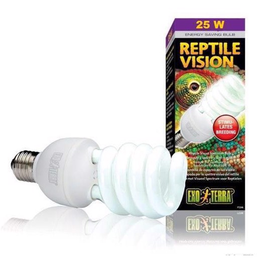 krybdyrets øje er mere følsomme end det menneskelige øje og til andre bølgelængder inden for lysspektret. Tidligere pærer er udviklet mod menneskelig syns farver. Spektret af Reptile Vision pæren topper i disse bølgelængder som er vigtige for krybdyrene. Som følge af de levende bølgelængder af lys leveret af Reptile Vision pæren, vil krybdyr opleve og opfatte farver fra deres omgivelser mere naturligt. Denne Exo Terra Reptile Vision pære vil bidrage til at forbedre levevilkårene og det fysiologiske velbefindende af dine krybdyr.