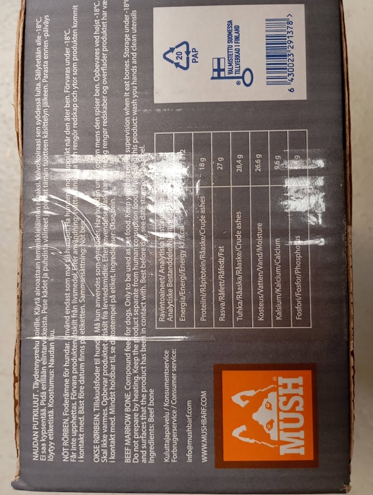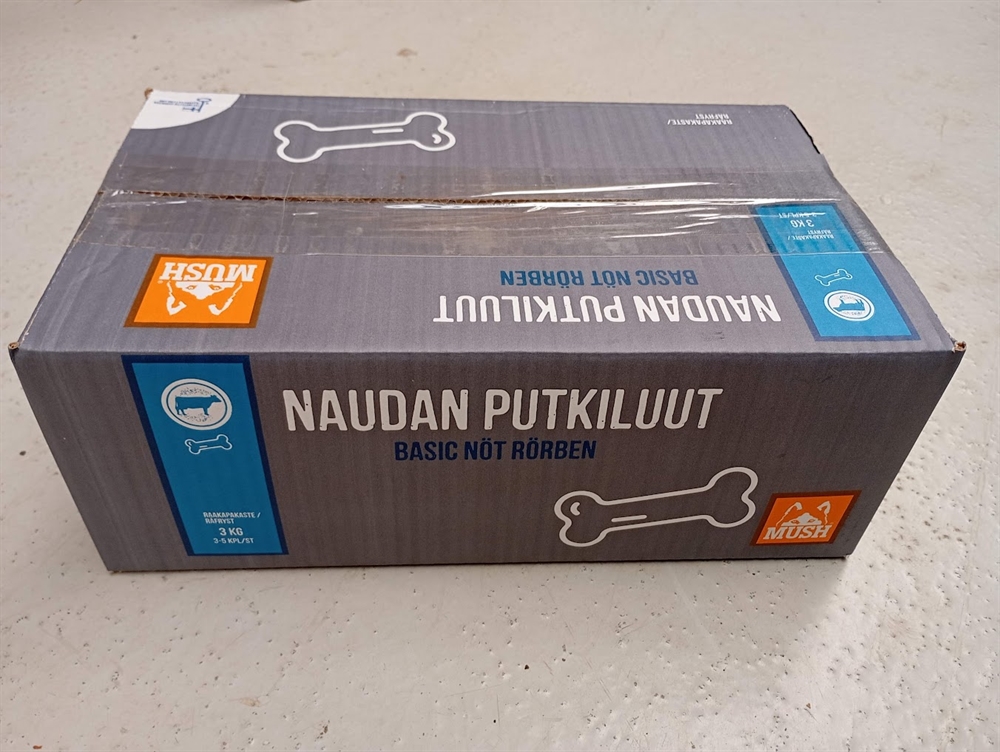Okse rør ben i ca 25 cm stykker i 3 kg kasse fra MUSH