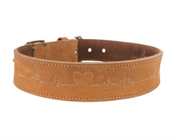 Halsbåndet er lavet af høj kvalitet fedtlæder som både er holdbart og slidstærkt. På indersiden af halsbåndet ses heartbeat designet. D-ringen er placeret på siden af halsbåndet, hvilket skåner hundens strubehoved, når den er i snor. Halsbåndet er syet, hvilket giver ekstra styrke og holdbarhed. Det bløde fedtlæder føles behageligt mod hundens hud og vil ikke forårsage irritation eller ubehag.