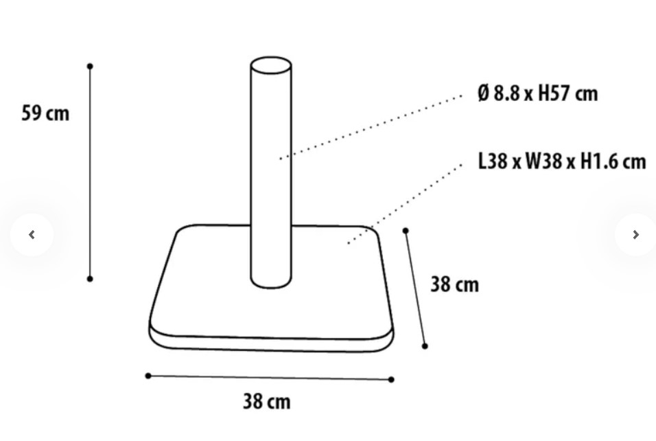 Tykkelse bundplade: 1,6 cm og diameter kradsestolpe: 8,5 cm
