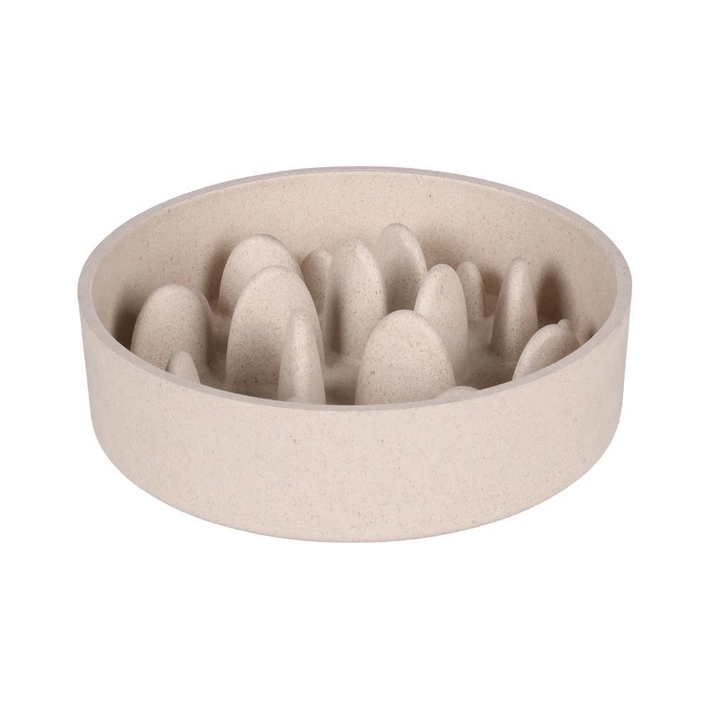Denne slowfeeder er lavet af bambusfibre og har en skridsikker bund, så den står fast på gulvet. Perfekt til at forhindre, at hunden sluger sin mad. Kan både anvendes til vådfoder og tørkost.