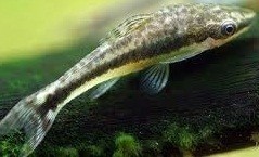 Denne lille dværgsugemalle har vi fået hjem fra Colombia. Den bliver ikke meget større end 4cm, den kræver en god alsidig kost med bla. mallepiller og alger i akvariet. - Den er udpræget stimefisk der i små flokke afsøger akvariet for fødeemner.