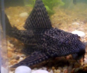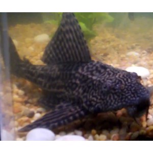 Nem algespiser der bliver stor, kan byttes til mindre inden den overstiger 15cm. Latinsk navn: Hypostomus plecostomus - Dansk navn: Plecostomus sugemalle - Engelsk navn: true pleco - Land: southeast Brazil. Temperament: Fredelig. Temperatur område 22-30C
