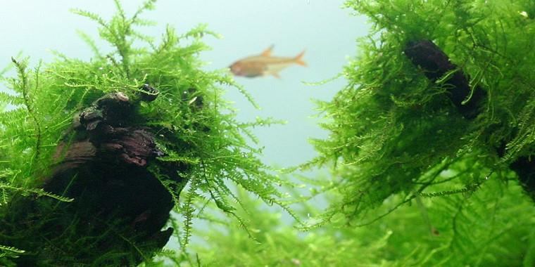 Taxiphyllum barbieri stammer fra sydøstasien, er nøjsom og stiller kun små krav til vand og lys. Et keramikanker med tynd fiskeline og plastkugle, påmonteret mos (diam. 4 cm). Ankeret begraves i bundlaget og den lille moskugle svæver frit i akvariet. En særlig dekorativ effekt opnås med flere kugler, svævende i forskellig højde. Dette gøres ved at afkorte fiskelinen mellem plastkugle og anker. Ved jævnlig trimning med en saks, kan kuglerne holdes tætte og i facon. Det kan være en fordel af og til at bytte om på top og bund på kuglerne, for at undgå at mossen i bunden skygges ihjel.