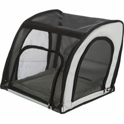 Vi har for eksempel cykelkurve med gitter eller med stofbeslag, hvis du foretrækker at tage din hund med ud på en cykeltur. Vi har transportbokse, der er praktiske til bilens bagagerum. Og vi har også dobbelt-transportbure, hvis du skal have to hunde med på tur.