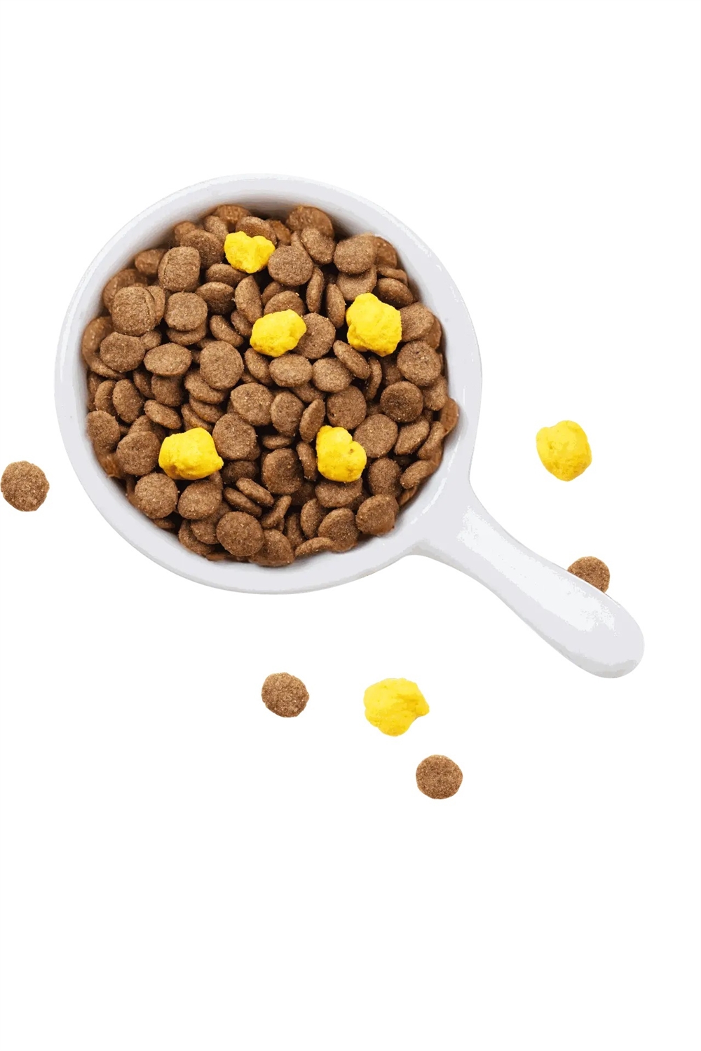 Sammensætning: Tunmel, kyllingemel, ærter, søde kartofler, tapiokastivelse, kyllingefedt, hydrolyseret kylling, kyllingesmagsekstrakt, hydrolyseret kyllingemel, cellulose, kyllingelevermel, æggeblomme-kuber, kaliumklorid, fiskeolie, cikorie-rod, yucca schidigera, astragalus membranaceus, kinesisk yam, røget blomme, radix astragali, poria, portulak.
