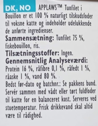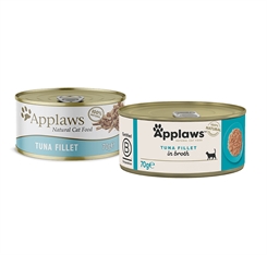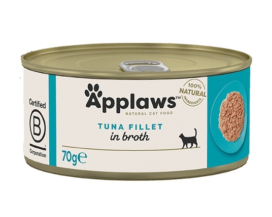Applaws tunfilet i bouillon er et 100 % naturligt komplementært kæledyrsfoder til voksne katte, der ikke indeholder mere end de angivne ingredienser.
