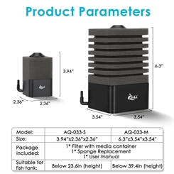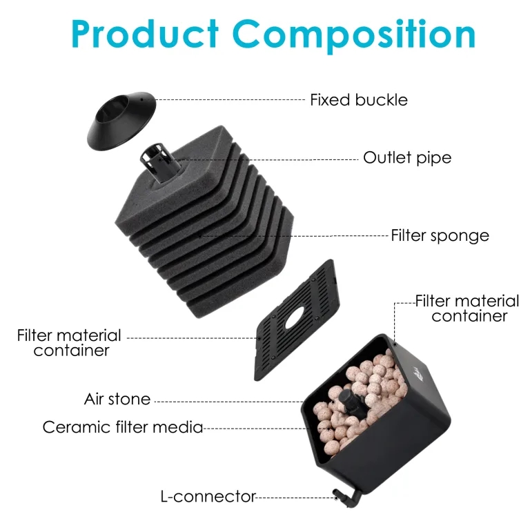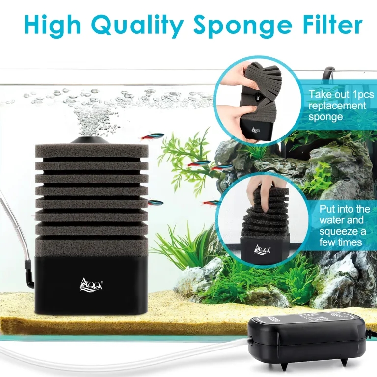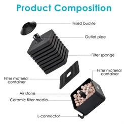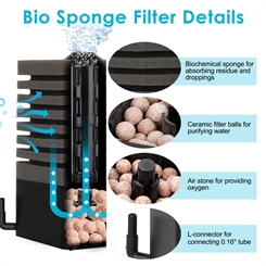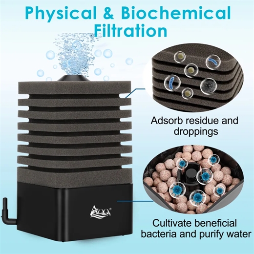 Ultrastille akvariesvampfilter til 20-75 liters akvarium med reservesvamp og biokeramiske mediekugler
