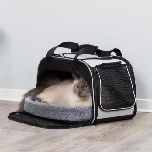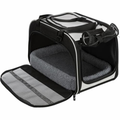 Beskyttet tilbagetrækningsmulighed med transportfunktionsærdeles egnet for katte udviklet med den dyrlæge med specialisering indenfor katte udtagelig, formstabil seng (plys) kan åbnes i siderne, i fronten og fra toppen med 4 håndtag og bæresele bæregjorde kan gemmes hvis de ikke er i brug med yderlommer formbevarende EVA med polyester