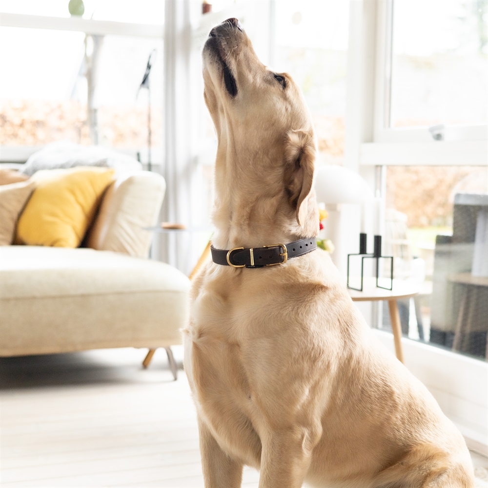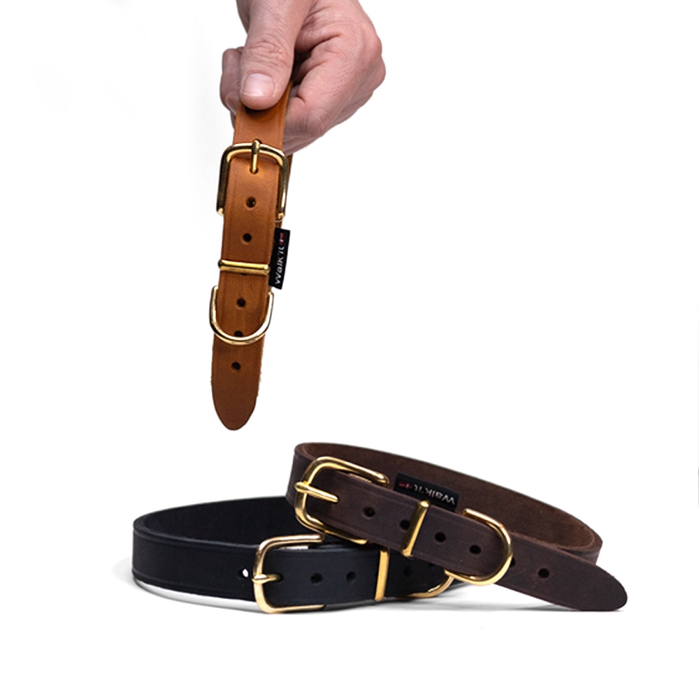 Blødt og komfortabelt halsbånd i ægte læder. Omhyggelig håndlavet og hele vejen igennem fremstillet i EU. Halsbåndet kombinerer den tidsløse elegance af kvalitetslæder og robustheden af massiv messing, hvilket giver et både stilfuldt og holdbart design. Giv hunden et halsbånd, der føles lige så godt som det ser ud.