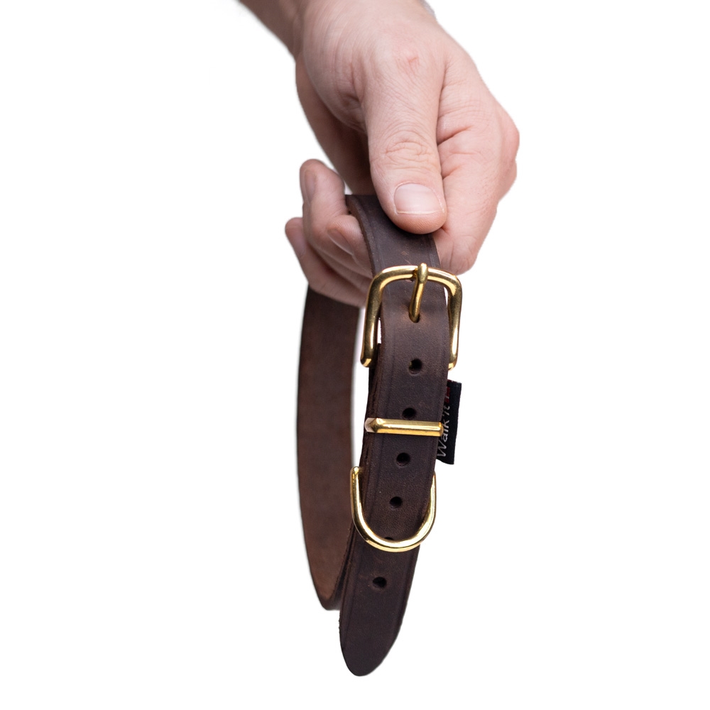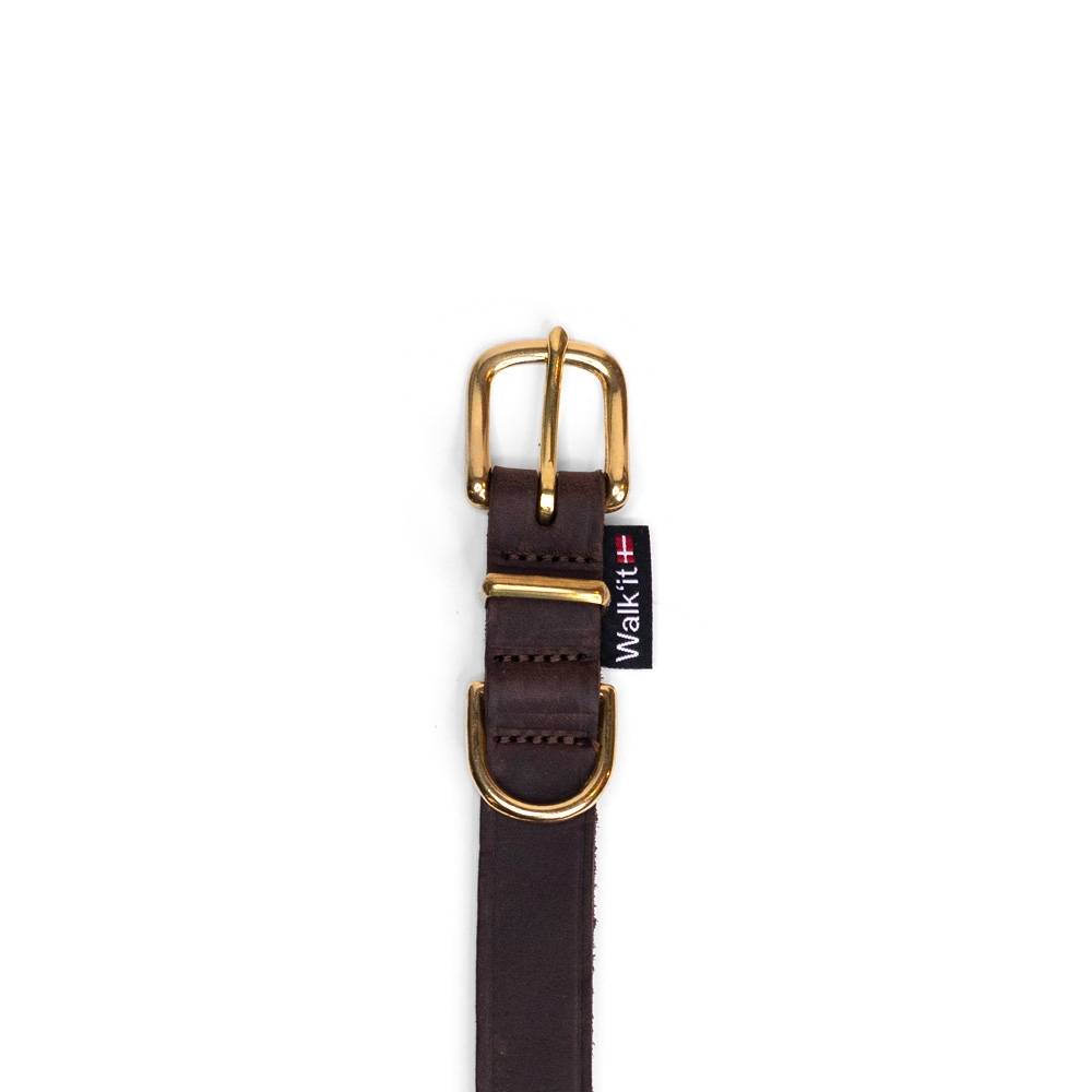 Walk\'it Halsbånd Brun læder/messing 22mmx60cm - XXL - 44-56cm