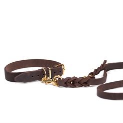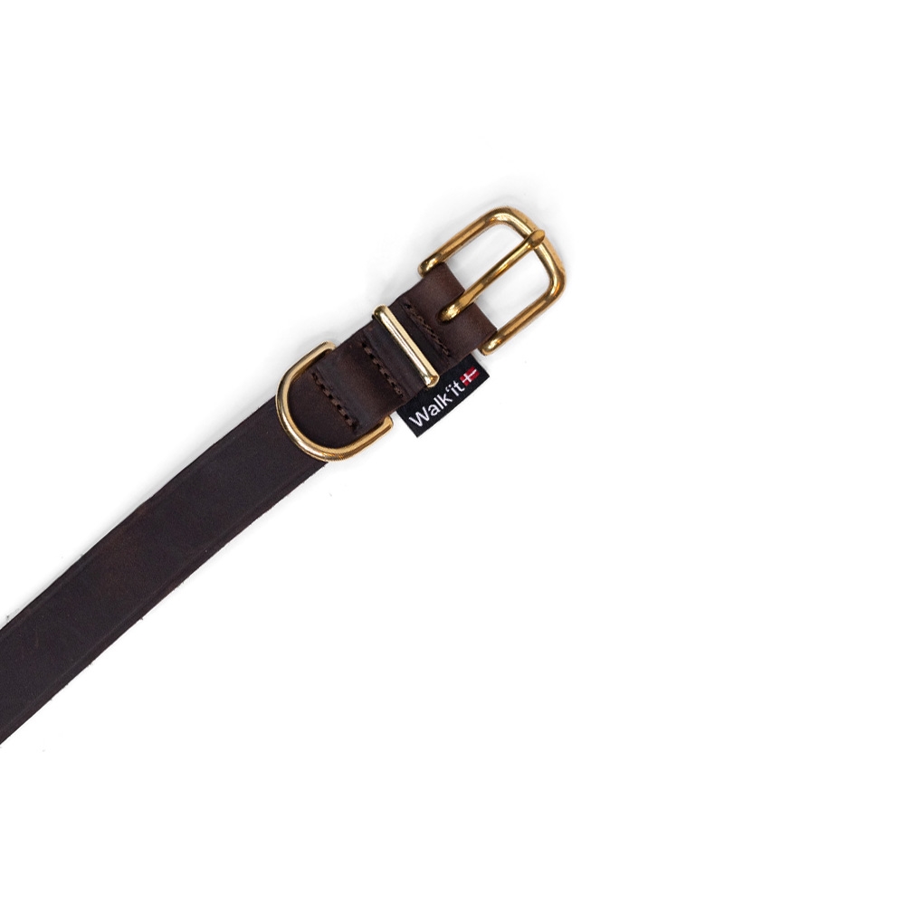 Walk'it Halsbånd Brun læder/messing 25mmx65cm - XXXL - 49-60cm