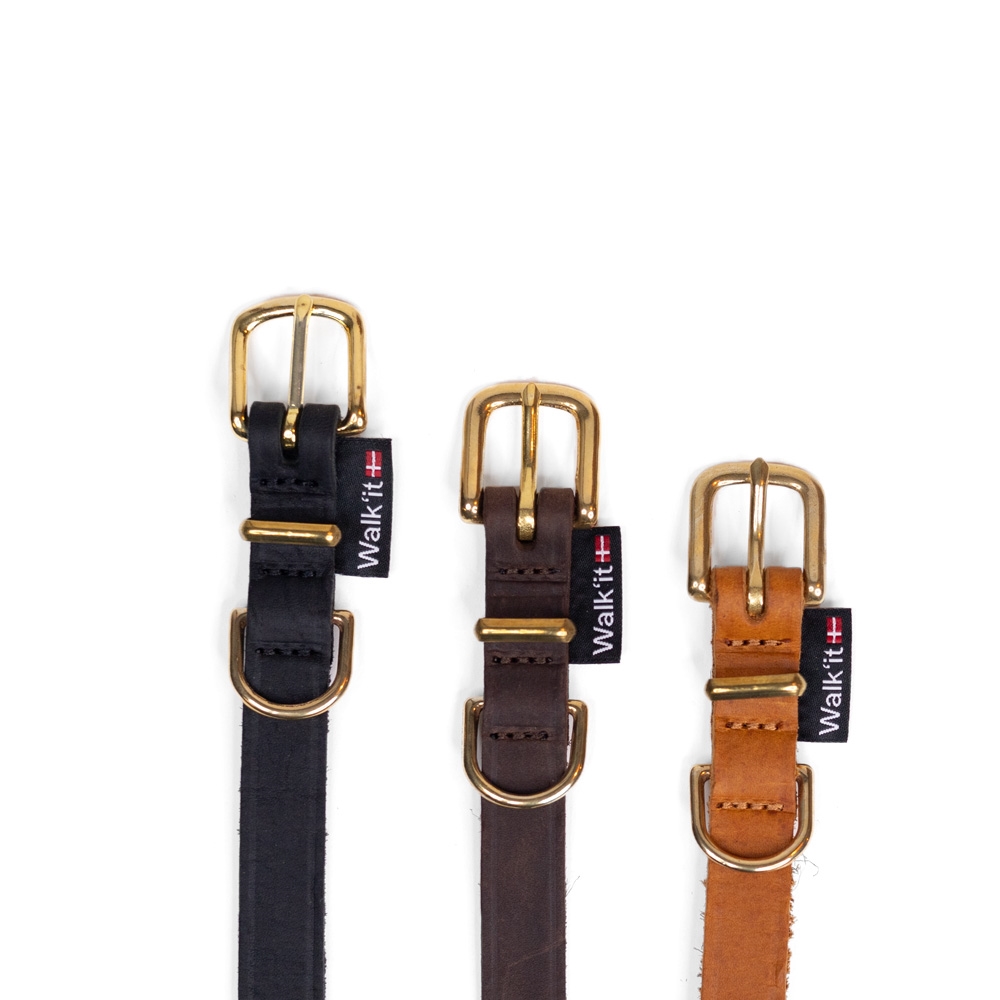 Walk\'it Halsbånd Cognac læder messing 18mmx45cm - M