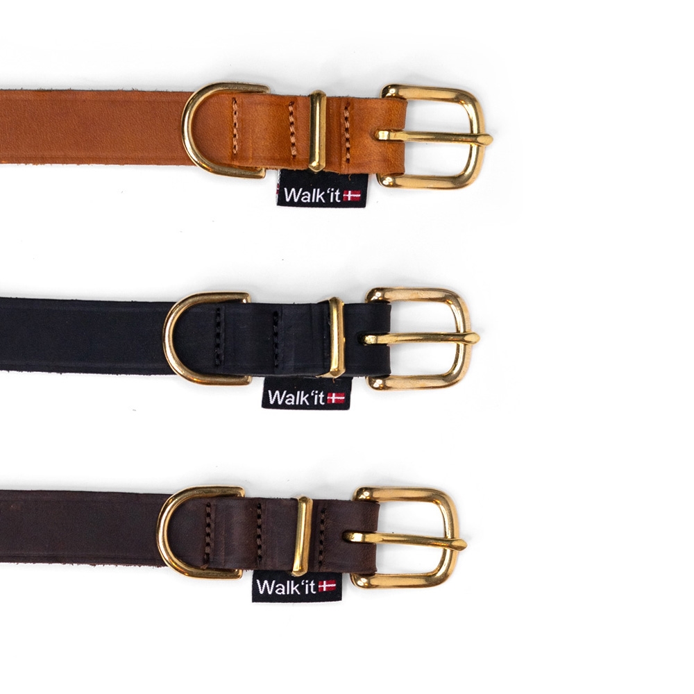 Walk\'it Halsbånd Cognac læder messing 22mmx55cm XL - 40-51cm