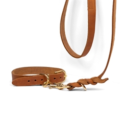 Walk'it Halsbånd Cognac læder messing 22mmx55cm XL - 40-51cm