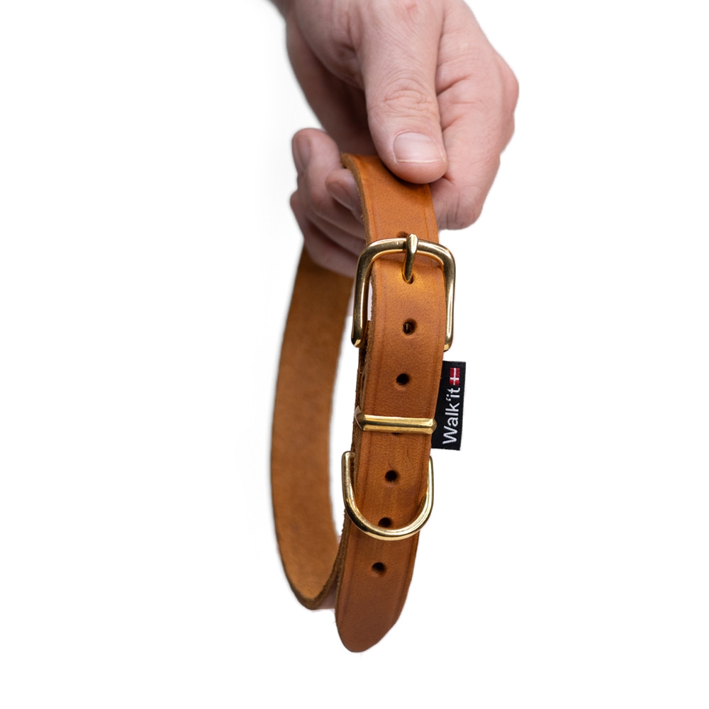 Walk\'it Halsbånd Cognac læder messing 22mmx60cm XXL - 39-50cm
