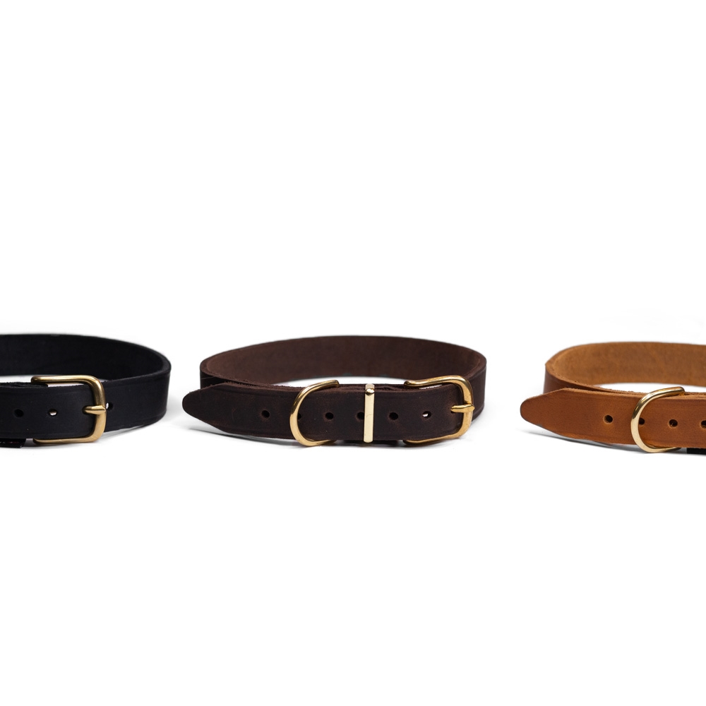 Blødt og komfortabelt halsbånd i ægte læder – med et ekstra bredt design for optimal komfort og støtte. Omhyggeligt håndlavet og fremstillet i sin helhed i EU. Halsbåndet kombinerer den tidsløse elegance fra kvalitetslæder med robustheden fra massiv messing, hvilket giver et både stilfuldt og slidstærkt design.