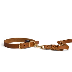 Walk'it Halsbånd Cognac læder messing 22mmx60cm XXL - 39-50cm