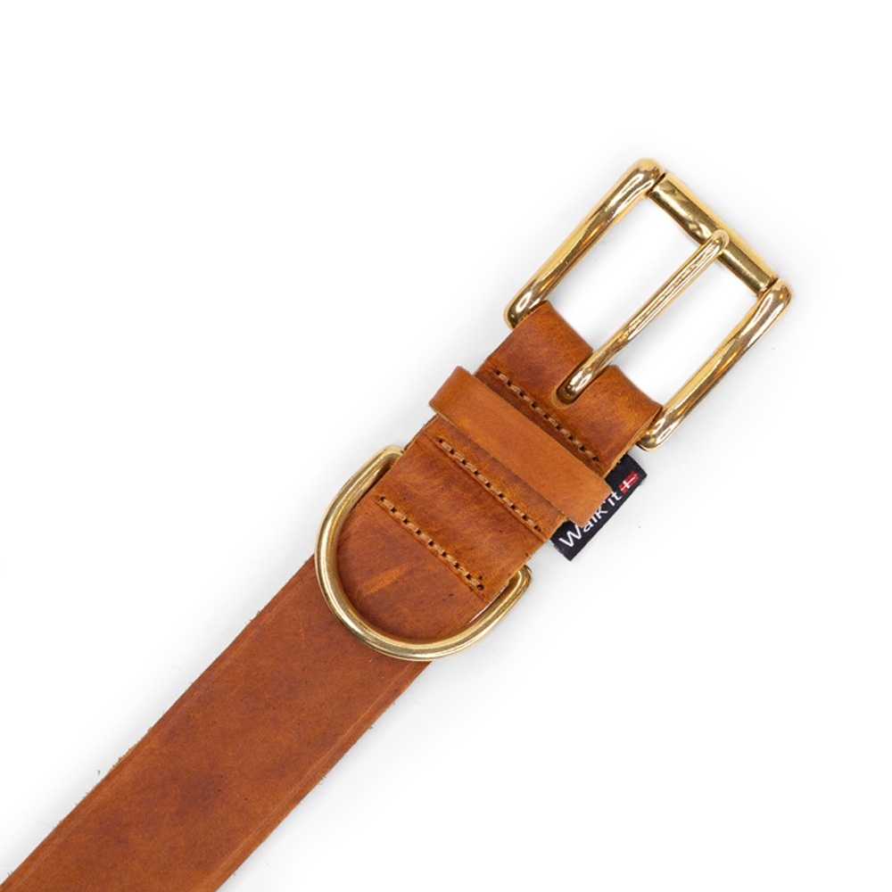 Walk\'it Halsbånd Cognac læder messing 40mmx60cm - XXL - 47-55cm