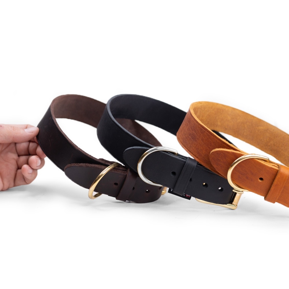 Blødt og komfortabelt halsbånd i ægte læder – med et ekstra bredt design for optimal komfort og støtte. Omhyggeligt håndlavet og fremstillet i sin helhed i EU. Halsbåndet kombinerer den tidsløse elegance fra kvalitetslæder med robustheden fra massiv messing, hvilket giver et både stilfuldt og slidstærkt design.