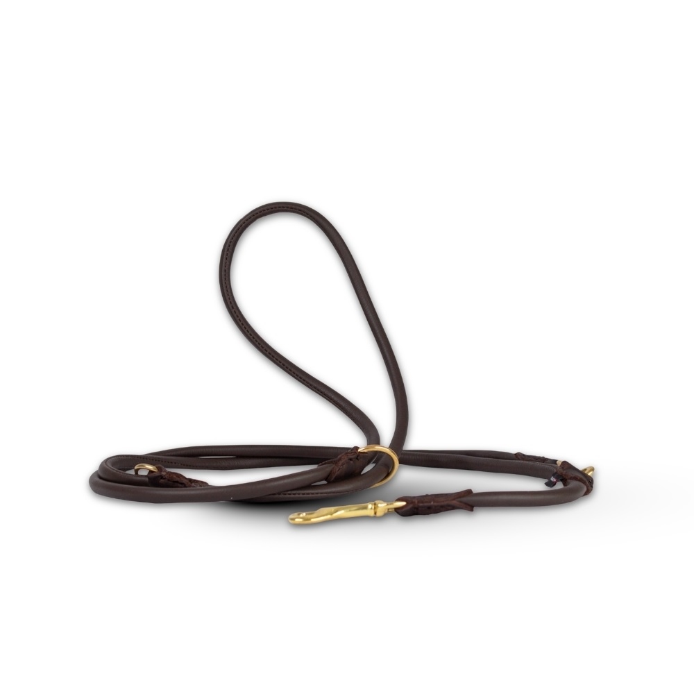 Eksklusiv, håndsyet dressurline i førsteklasses europæisk læder med elegant, rundsyet finish. Den fleksible 3-trins justering giver mulighed for flere længder og bæremåder – fra tæt kontrol til mere frihed eller håndfri brug.