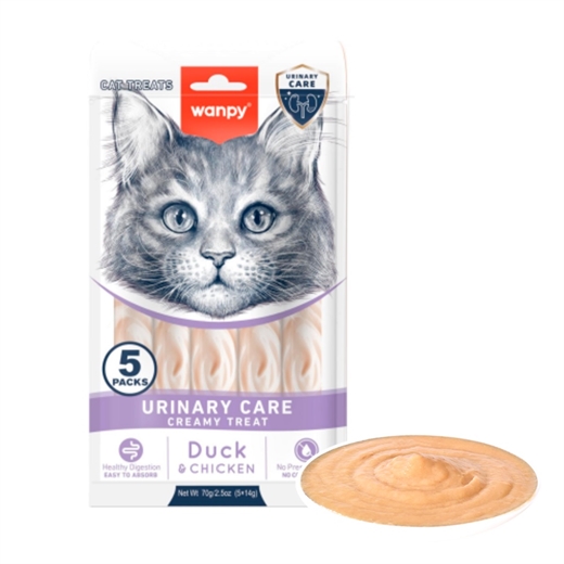 Wanpy Functional Creamy Lickable Treat Urinary Care Duck & Chicken 70g (5x14g) - godbid til katte