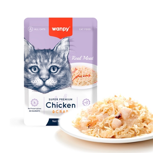 Wanpy Retort Pouch Chicken & Crab 85g - vådfoder til katte
