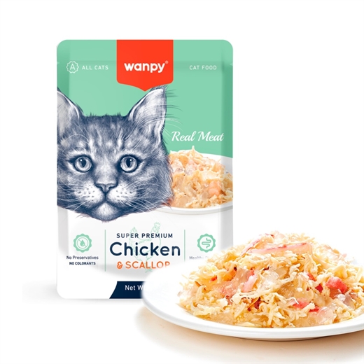 Wanpy Retort Pouch Chicken & Scallop 85g - vådfoder til katte