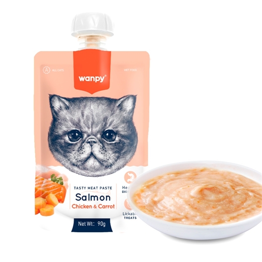 Wanpy Tasty Meat Paste - Salmon with Chicken & Carrot 90g - vådfoder til katte