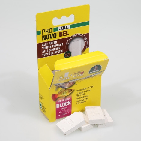 De fleste akvariefisk, med undtagelse af ungfisk, ville overleve en dag eller to uden mad – ligesom i naturen. Men så får mange akvarieejere dårlig samvittighed og derfor er der JBL PRONOVO WEEKEND selv ved kort fravær.