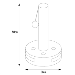 Kradsetræet er 50 cm høj og 30 cm bred (se billede)