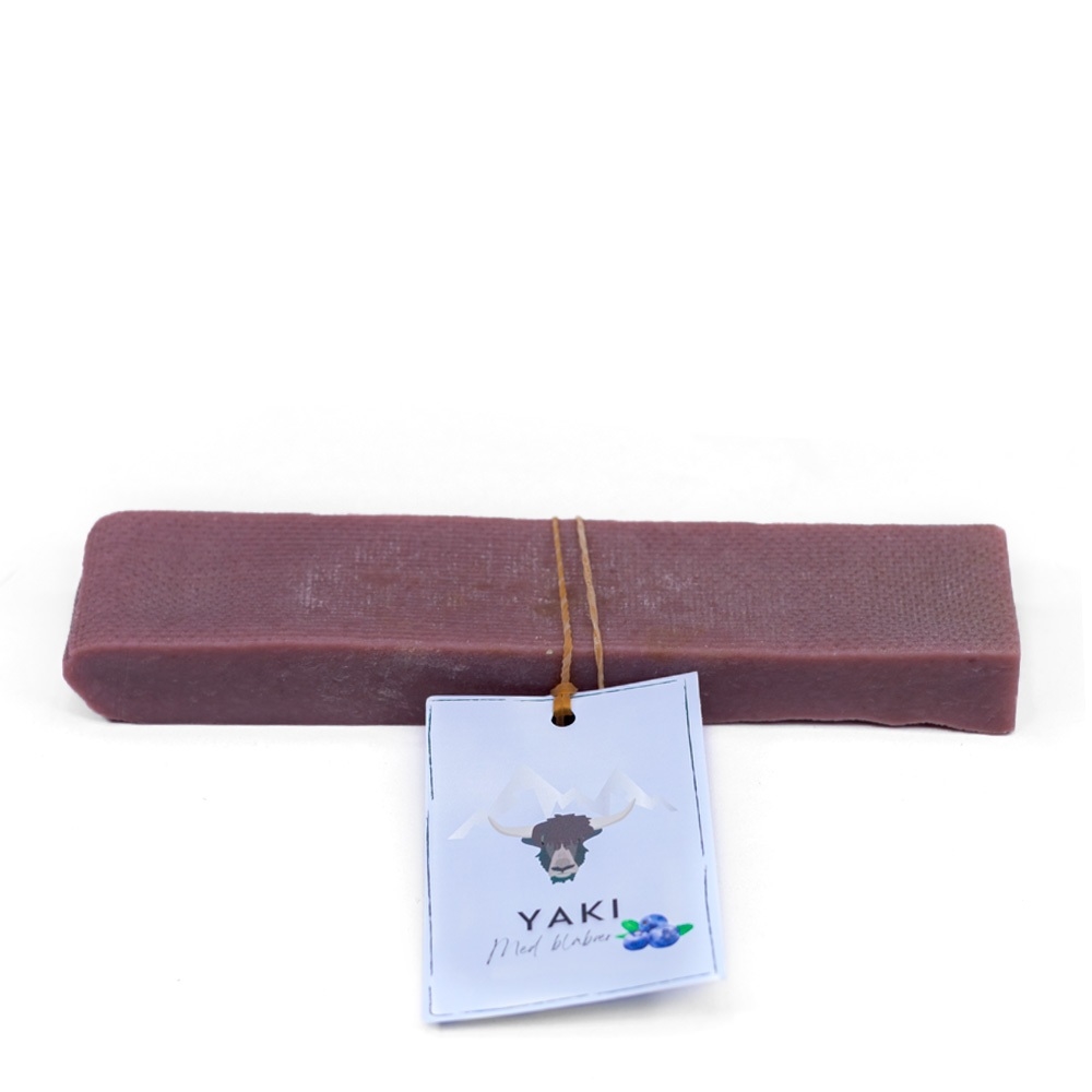 Yaki Blåbær er en proteinrig og glutenfri vegetarisk snack til hunde, baseret på hård ost og tilsat Blåbær . Fremstillet af nepalesere efter en original opskrift fra Himalaya. Den lange tyggetid giver både fornøjelse, mindsker stress og hjælper med at forebygge plak og tandsten.