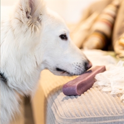 Lang tyggetid giver fornøjelse, mindre stress og forebygger plak og tandsten. Hav altid frisk drikkevand stående og lad aldrig hunden være uden opsyn, mens den tygger på snacken.